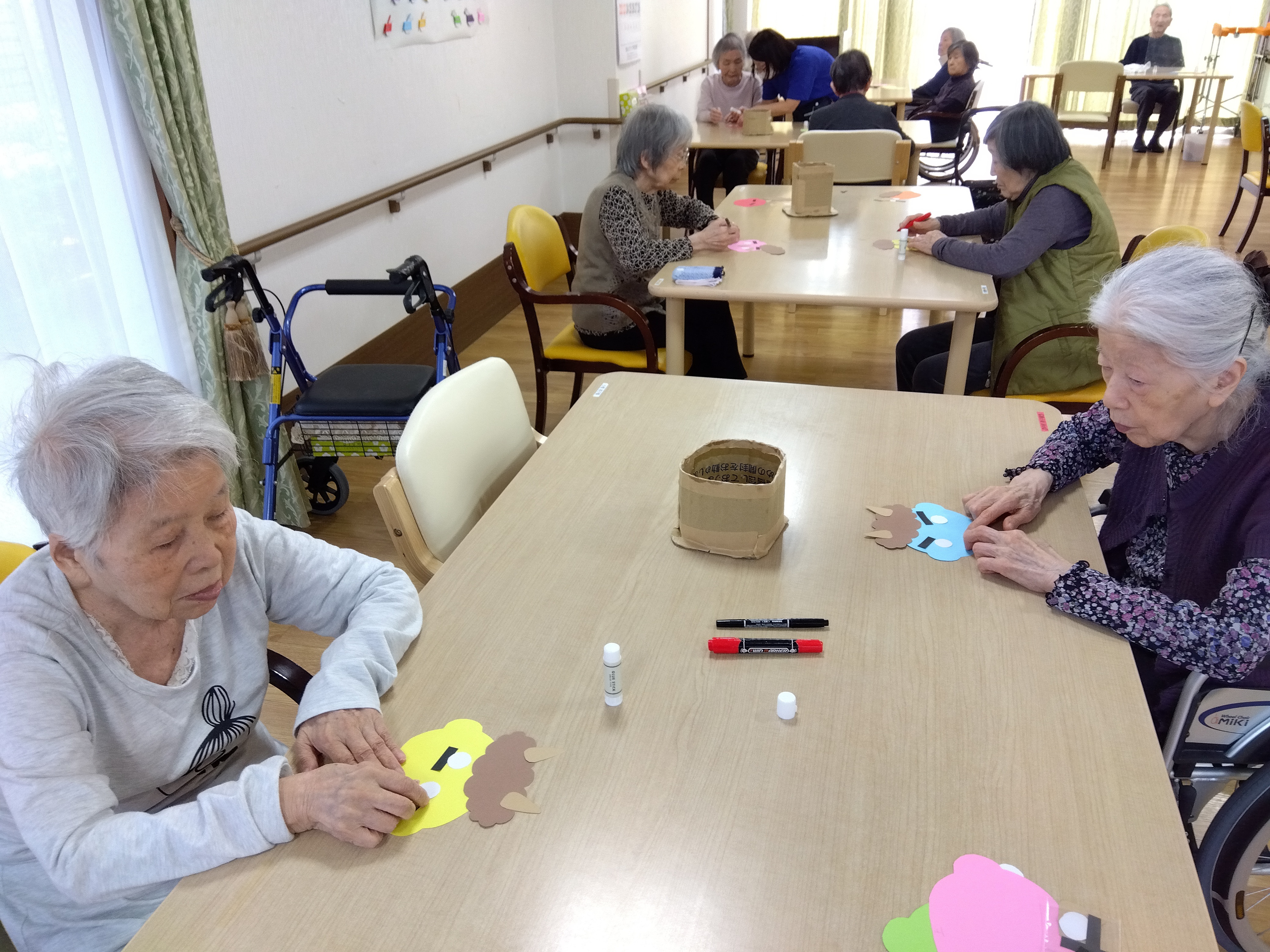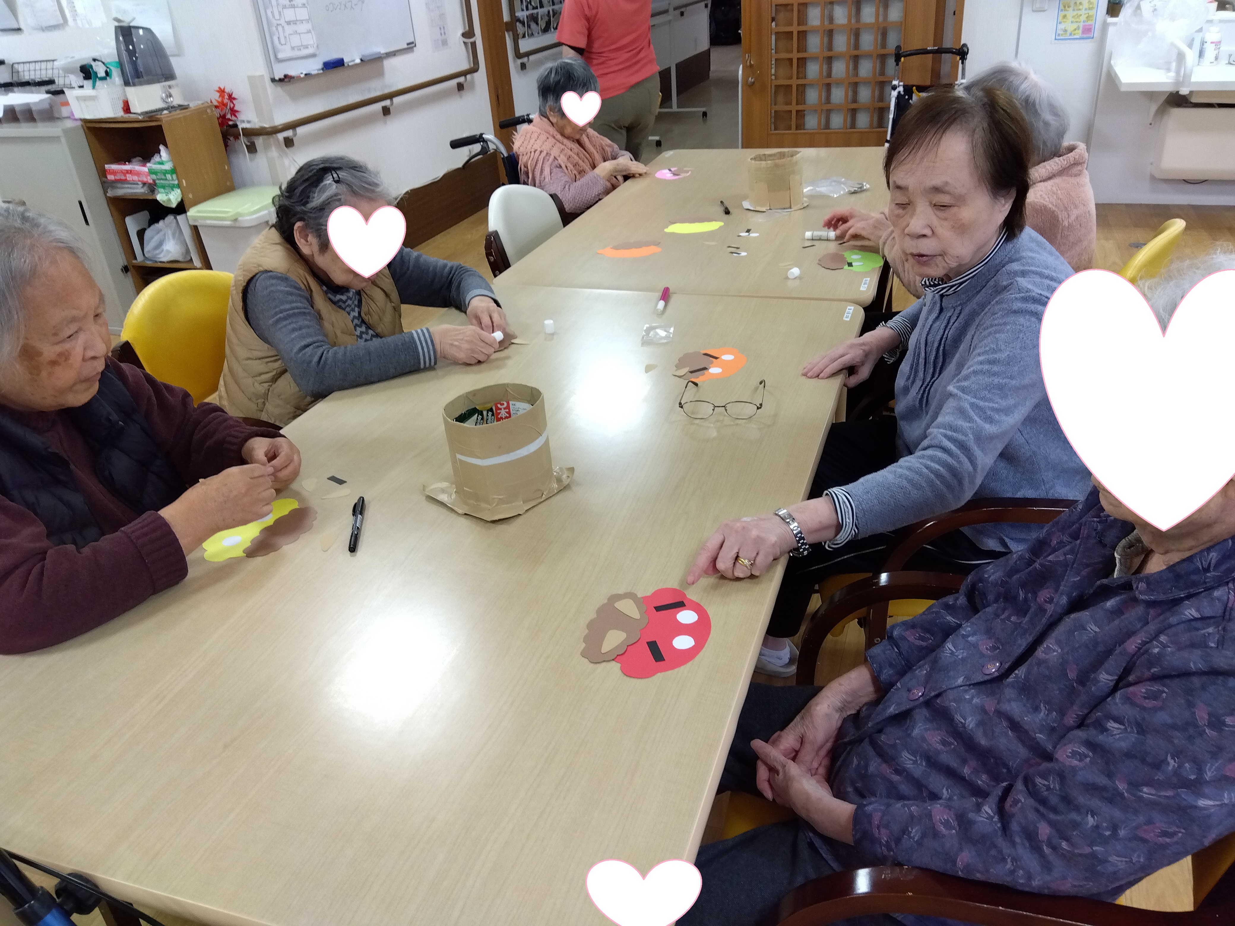 鬼退治をしてもらったのですが、皆様には鬼のお面を作って頂きました