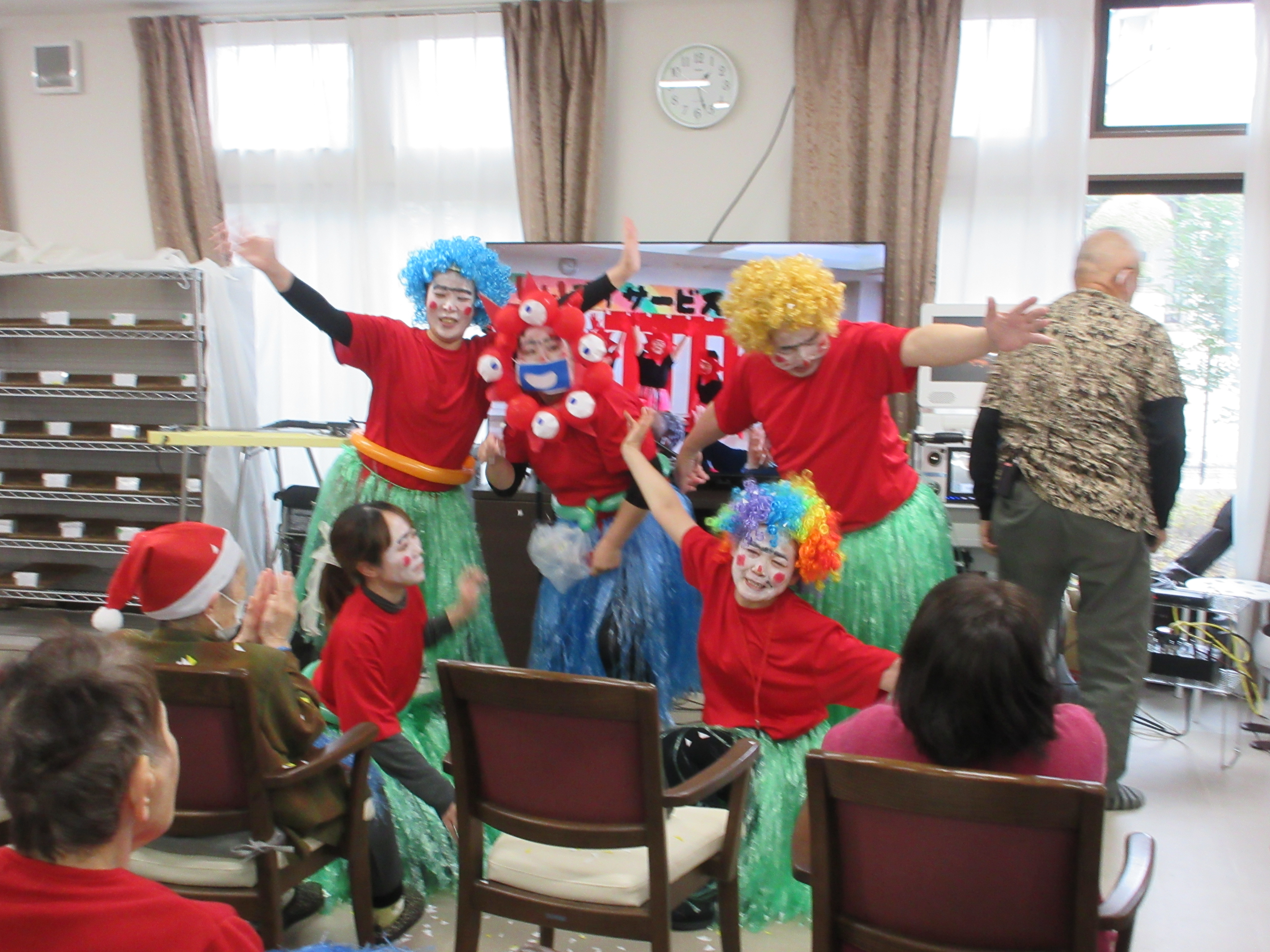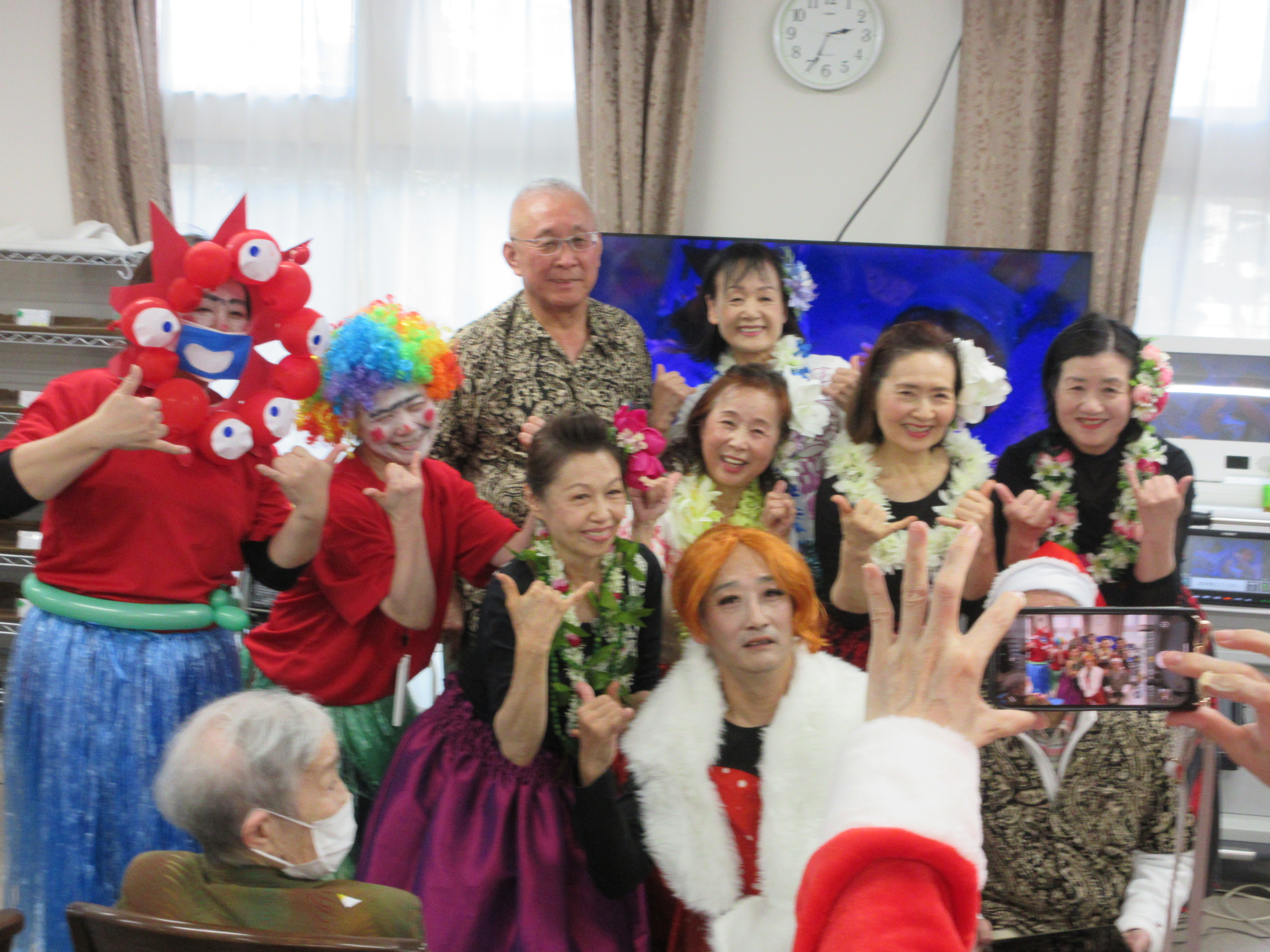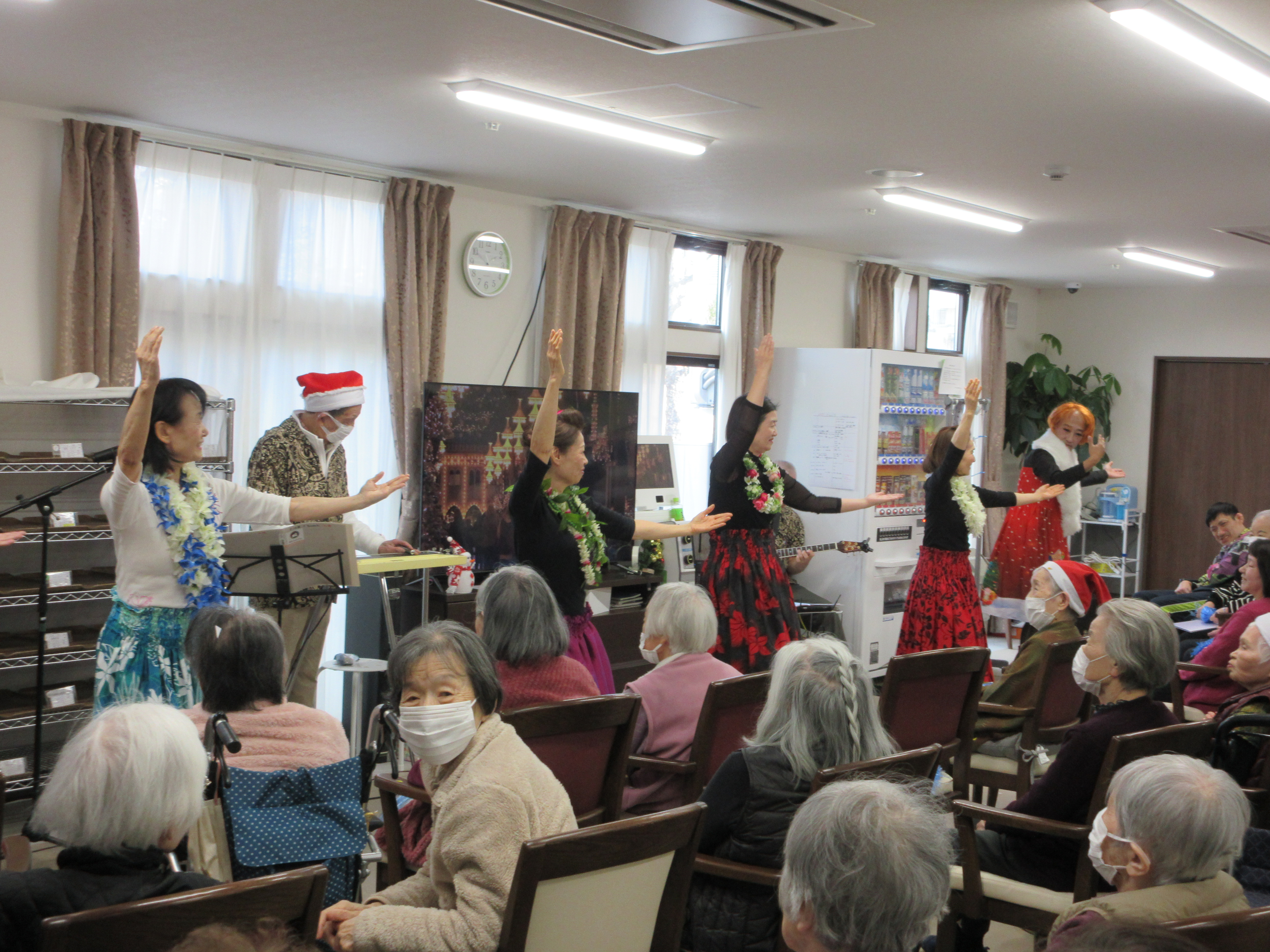 利用者様、スタッフも早速フラダンスを伝授していただき、